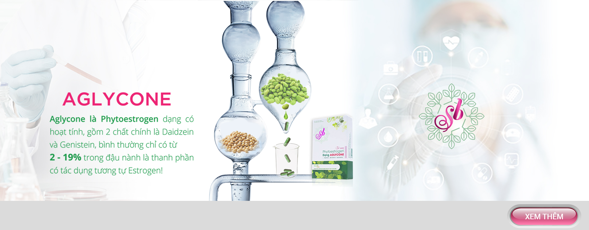 Viên mầm đậu nành SB được chiết xuất từ cao mầm đậu nành dạng hoạt tính bào chế theo công nghệ chuyển giao từ nghiên cứu khoa học của đội ngũ y bác sĩ Đại học Y dược. Tạo ra hoạt chất Phytoestrogen dạng Aglycone đầu tiên, tăng khả năng hấp thu vào cơ thể.