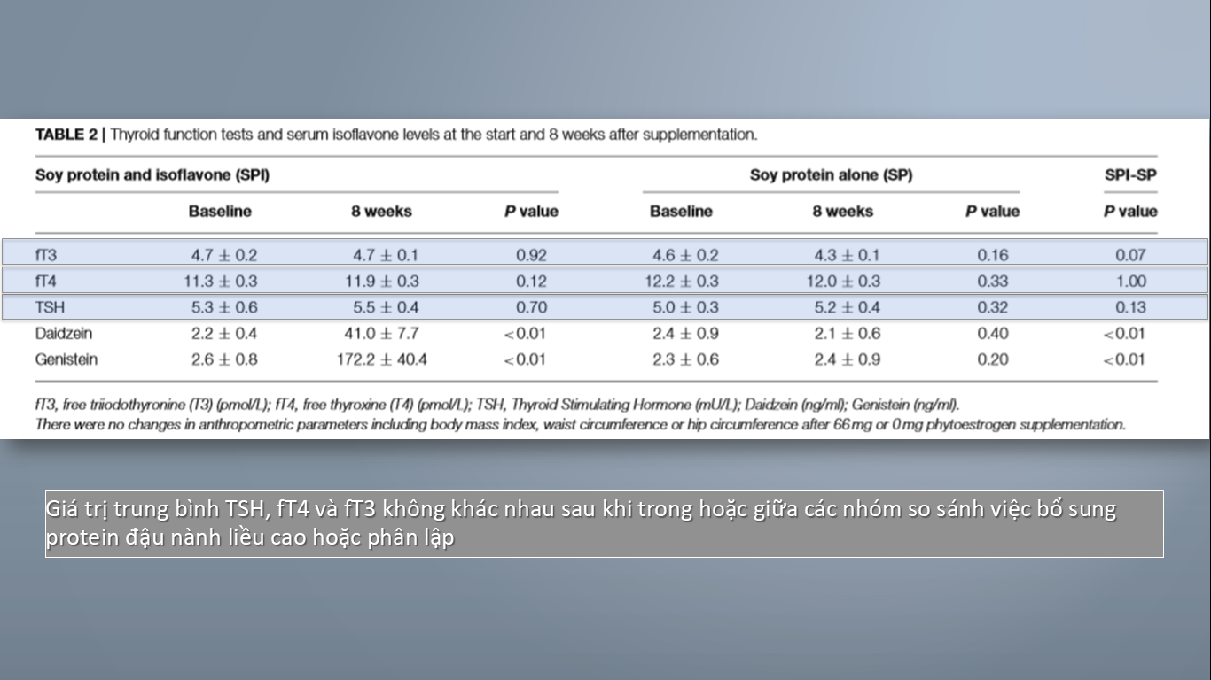 Kết luận cuối cùng của các nhà khoa học khẳng định Phytoestrogen trong đậu nành không làm tăng tỷ lệ suy tuyến giáp quá mức hoặc thay đổi các xét nghiệm chức năng tuyến giáp ở bệnh nhân suy giáp cận lâm sàng. Các bệnh nhân tuyến giáp hoàn toàn có thể sử dụng các chế phẩm từ mầm đậu nành