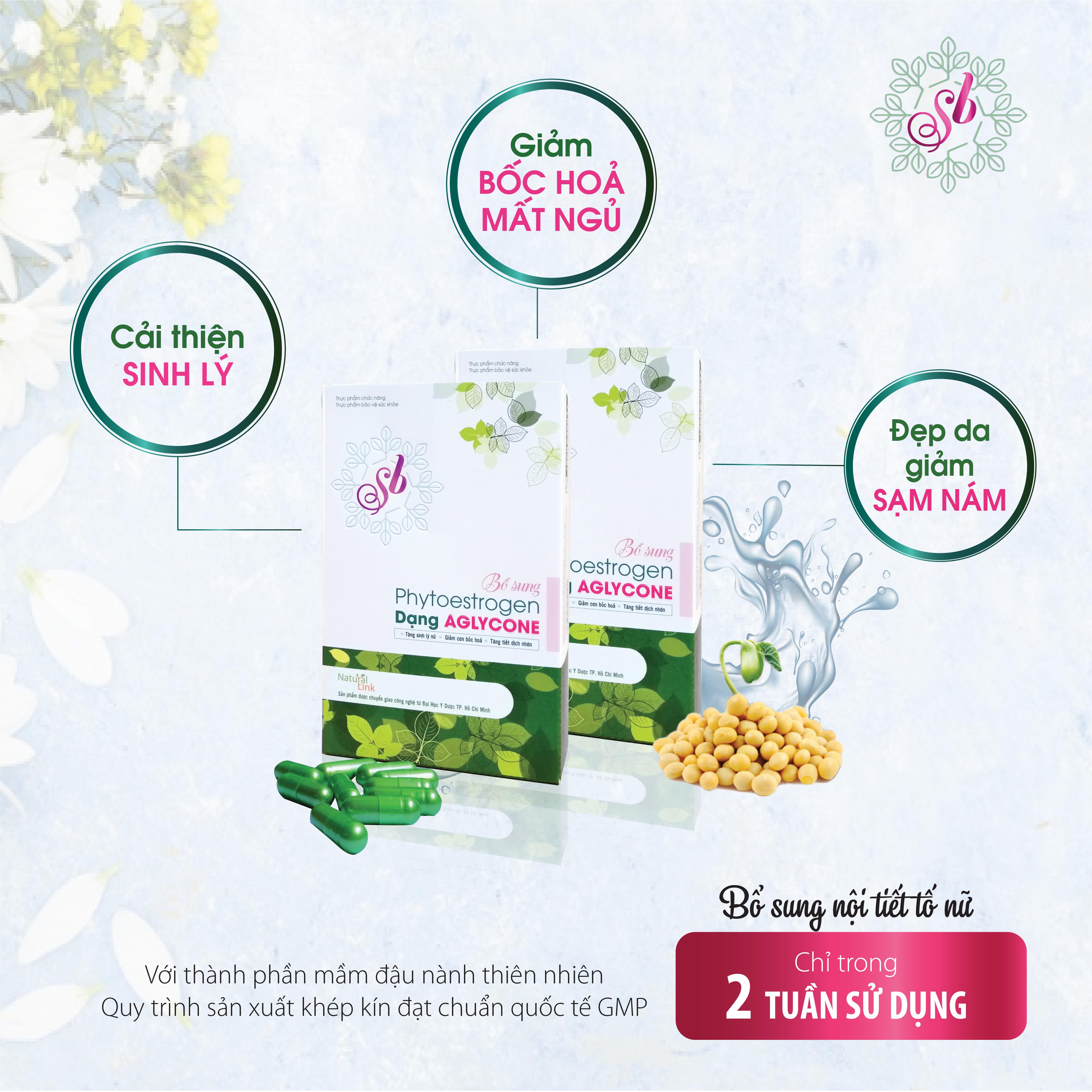 Viên uống SB là sản phẩm đầu tiên và duy nhất tại Việt Nam bổ sung phytoestrogen dạng Aglycone với hàm lượng hoạt chất cao gấp 10 lần, giảm các dấu hiệu thiếu hụt nội tiết tố nữ sau 2 tuần sử dụng trong cải thiện triệu chứng do thiếu hụt nội tiết tố nữ (estrogen) nhanh chóng.