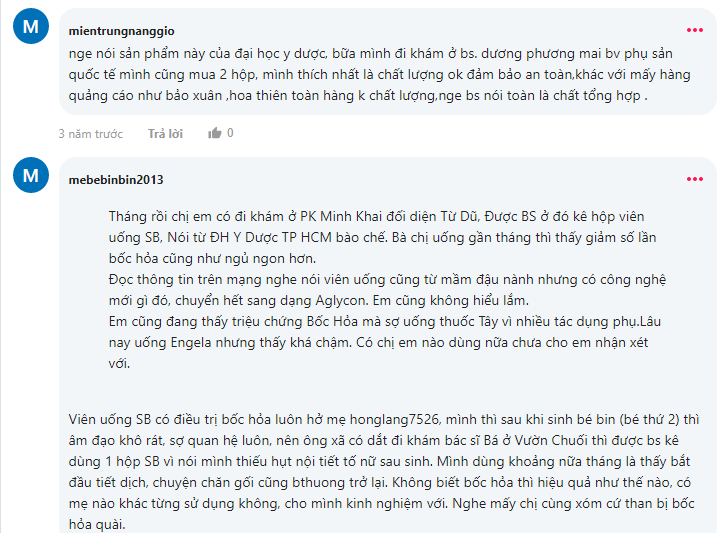 Viên uống đậu nành SB Phytoestrogen Natural Link review từ người dùng có tốt không? Ngoài những thông tin từ nhà cung cấp về sản phẩm, các bạn có thể tham khảo một số ý kiến đánh giá trên diễn đàn Webtretho để có cái nhìn đúng đắn hơn về sản phẩm. Tham khảo một số review mầm đậu nành SB mà chúng tôi đã tổng hợp dưới đây: