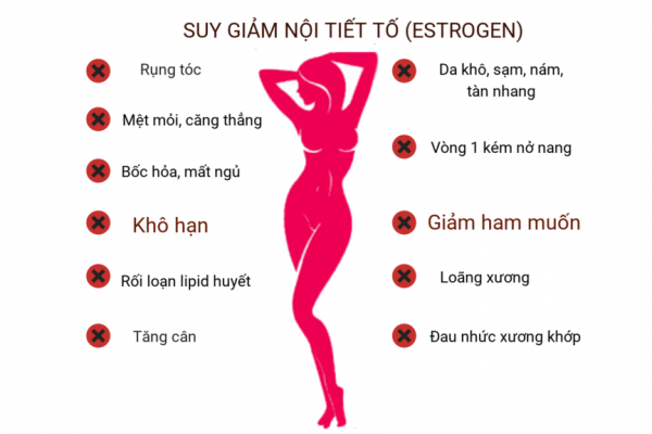 Phụ nữ suy giảm Estrogen, phụ nữ sau sinh, phụ nữ tiền mãn kinh, mãn kinh có các triệu chứng: